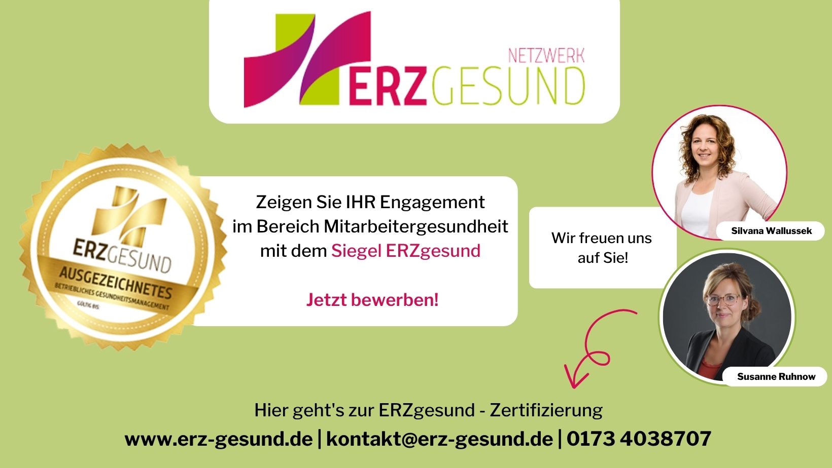 Sie haben Interesse an einer Zertifizierung mit unserem Siegel ERZgesund? Direkt bewerben! Hier wird Ihr Unternehmen ERZgesund